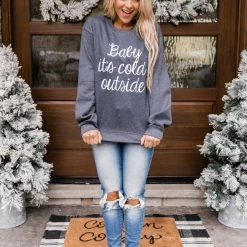 Brand new 💯 Pink Lily Baby It’s Cold Outside Script Dark Heather Graphic Sweatshirt ⭐