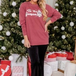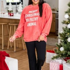 Budget 🔥 Pink Lily Merry 🎄 Christmas Ya Filthy Animal Red Corded Graphic Sweatshirt 🎁