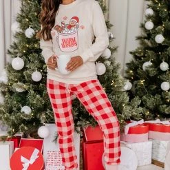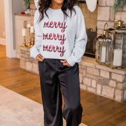 Budget 🤩 Pink Lily Plaid Merry Merry Merry Ash Graphic Sweatshirt 🤩