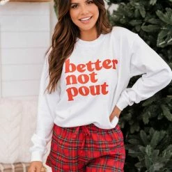Best reviews of 🔔 Pink Lily Better Not Pout White Graphic Sweatshirt ❤️