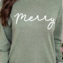 Best Pirce 🔥 Pink Lily Merry Script Olive Graphic Sweatshirt 🧨