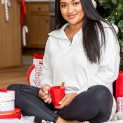Flash Sale π Pink Lily Pulling Heartstrings Ivory Quarter Zip Pullover FINAL SALE π€©