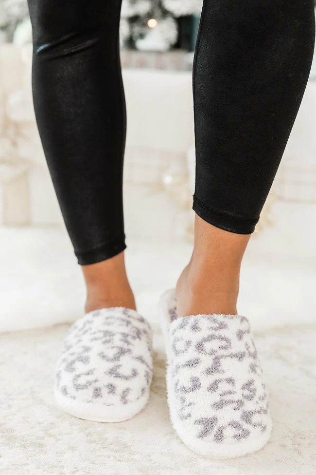 These adorable light grey leopard print slippers are the perfect choice for the morning! They are lightweight and slip on style so they are perfect to wear through every season!