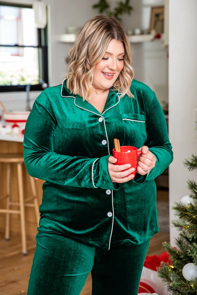 - Green velvet lounge top