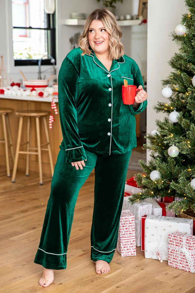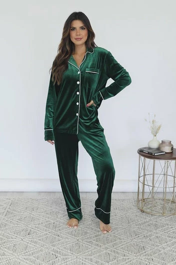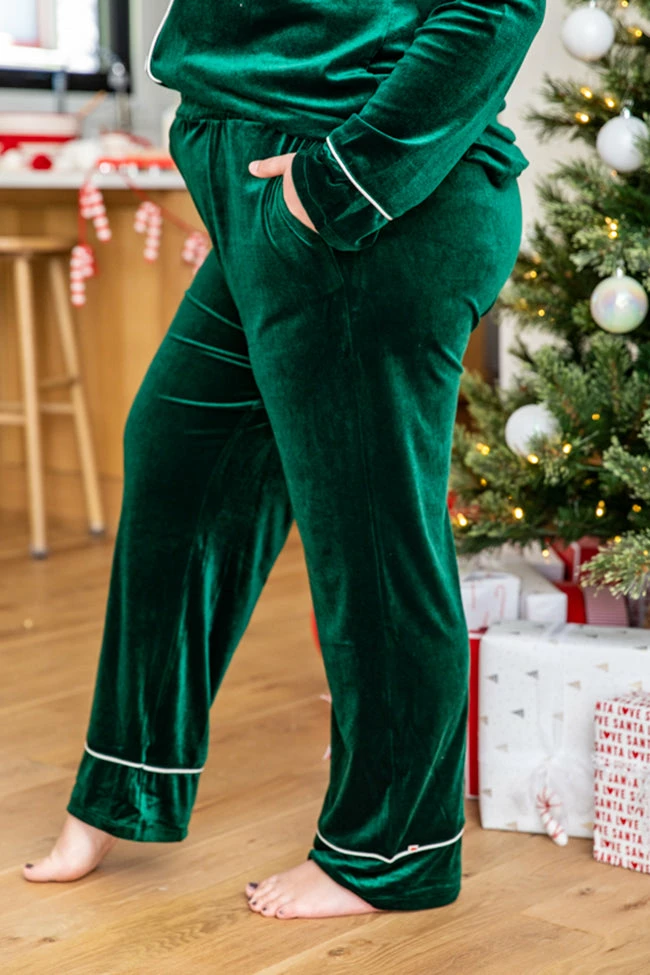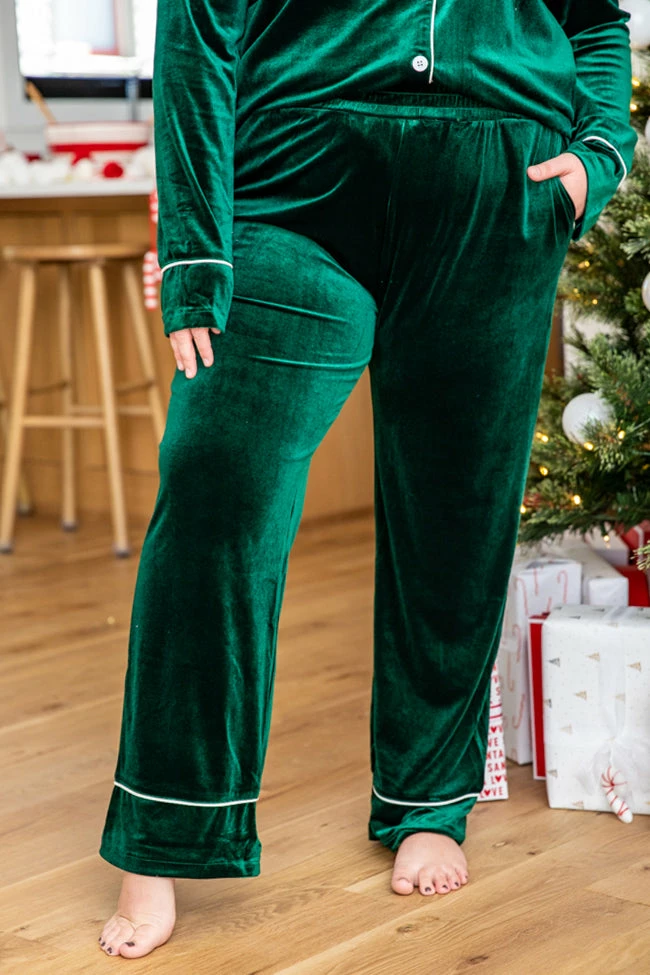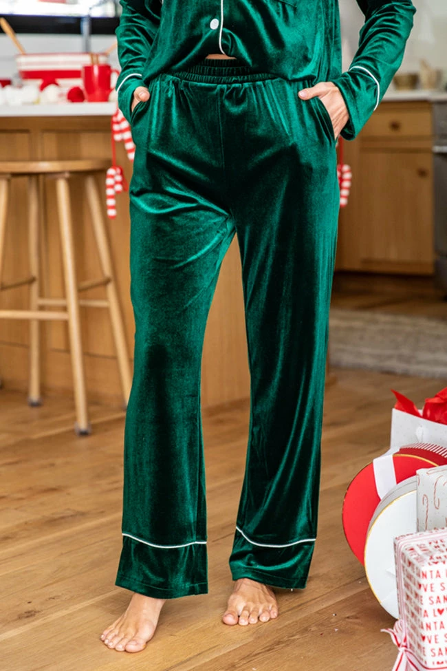 - Green velvet lounge pants