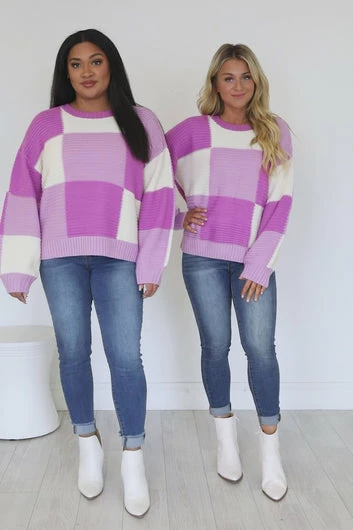- Purple colorblock sweater