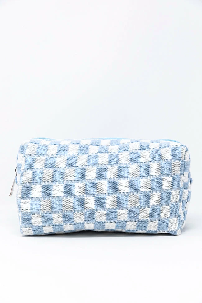 - Light blue checkered cosmetic pouch