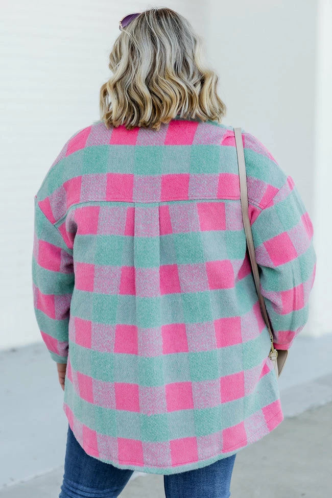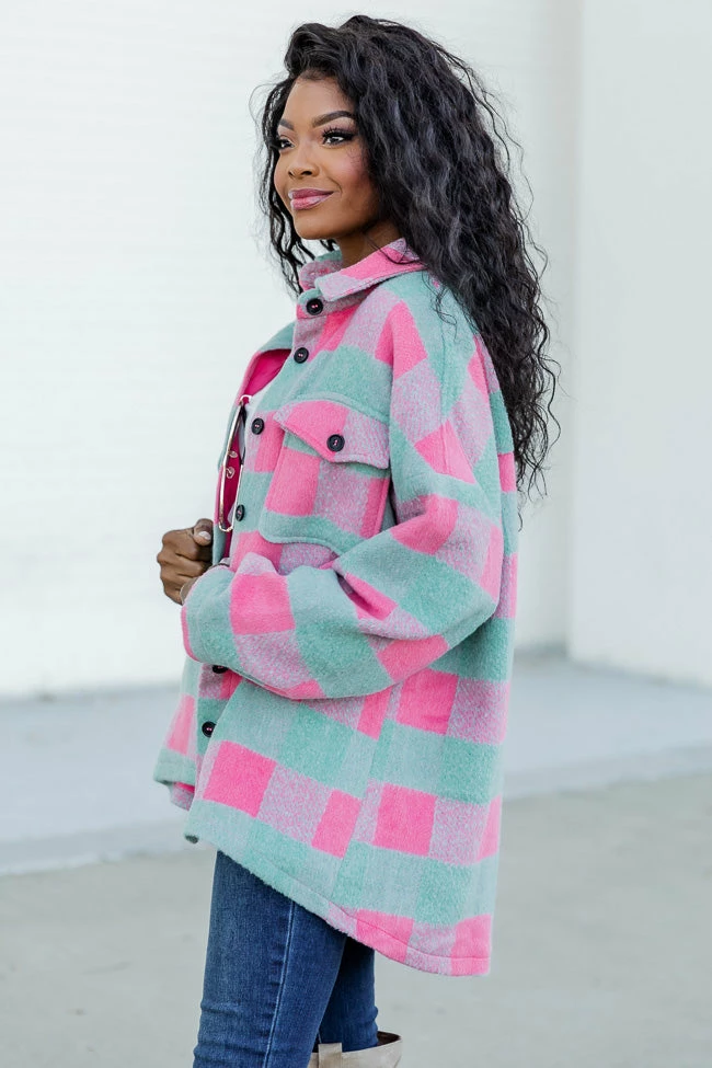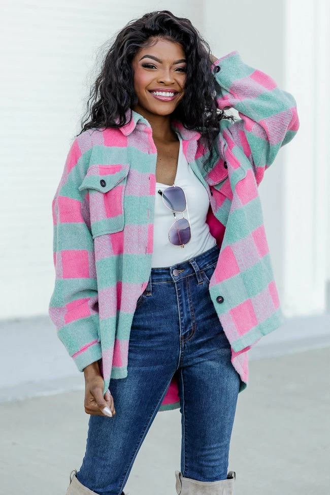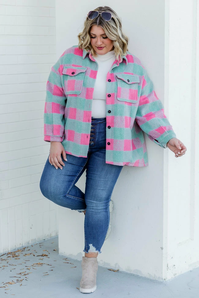 - Mint and pink plaid shacket