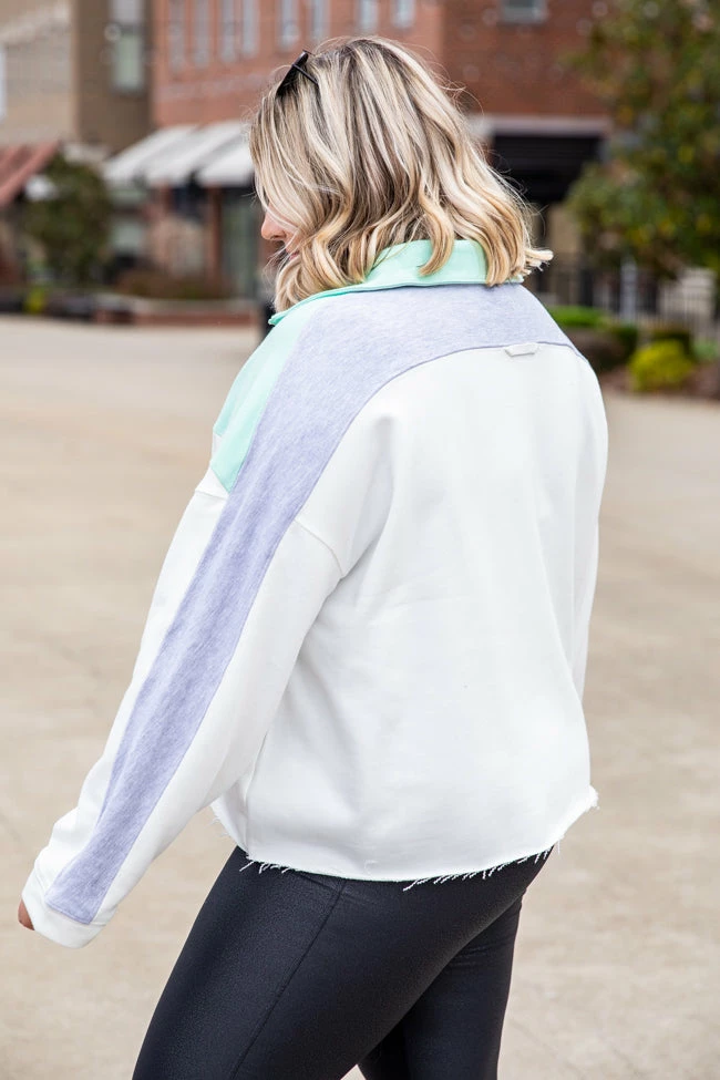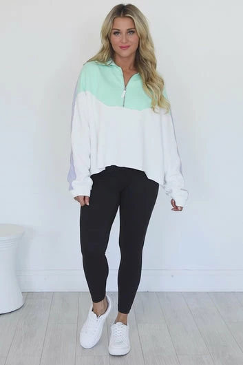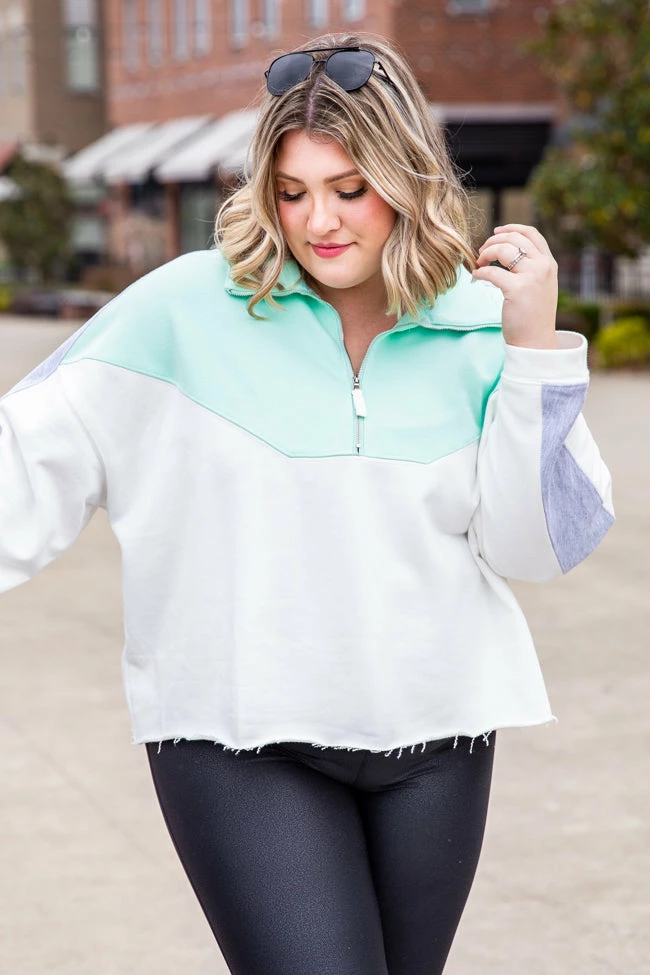 - Mint and grey quarter zip pullover