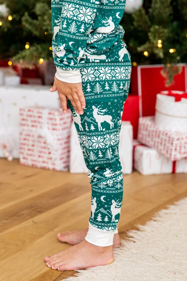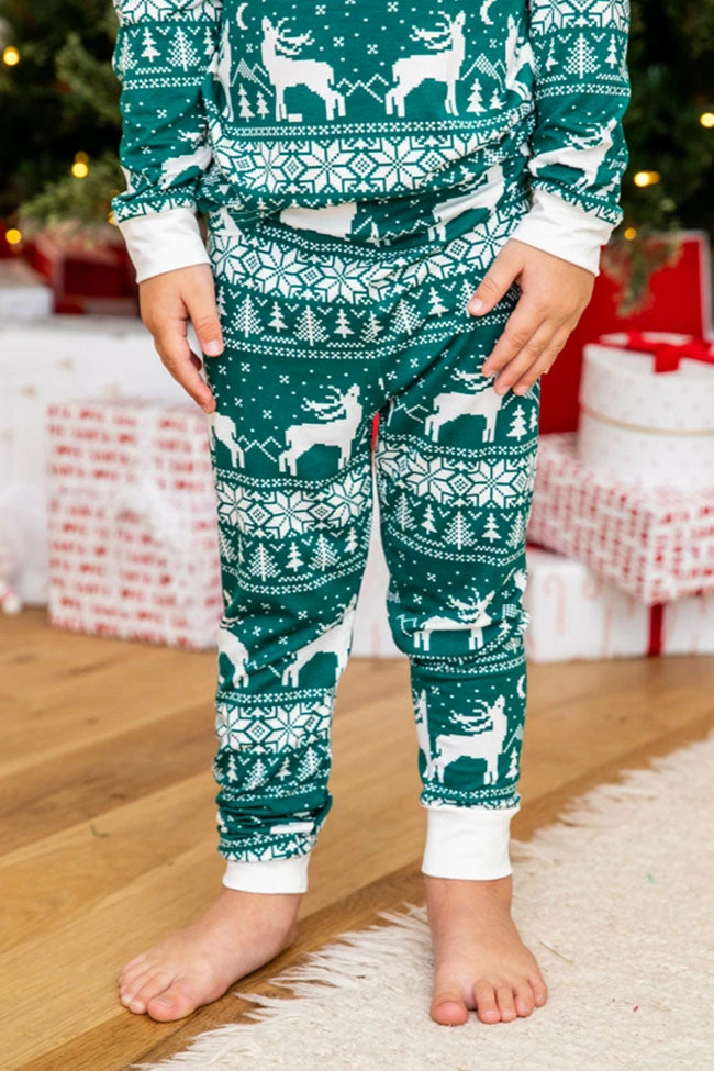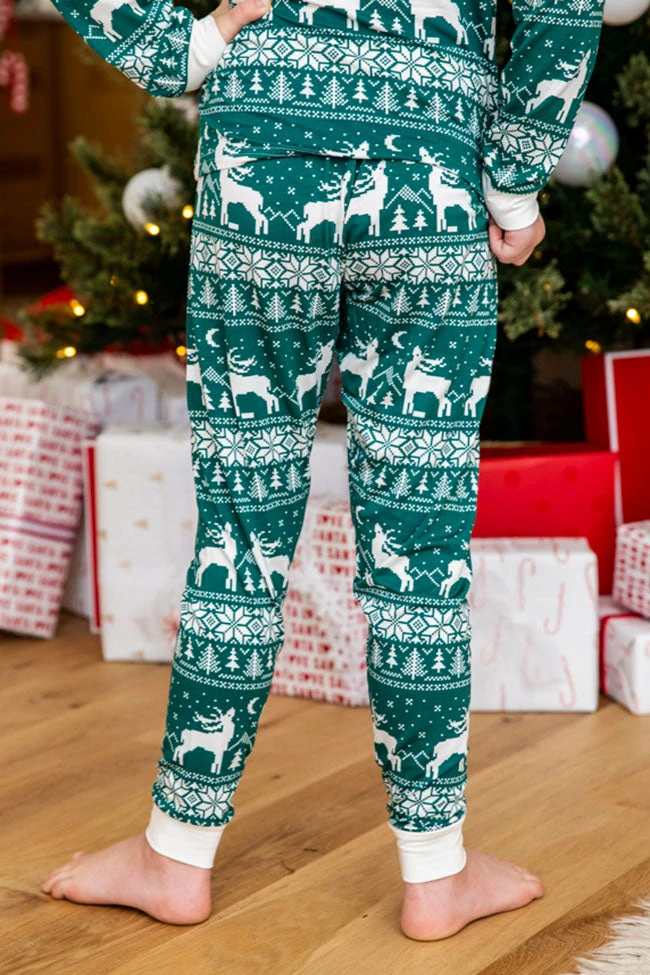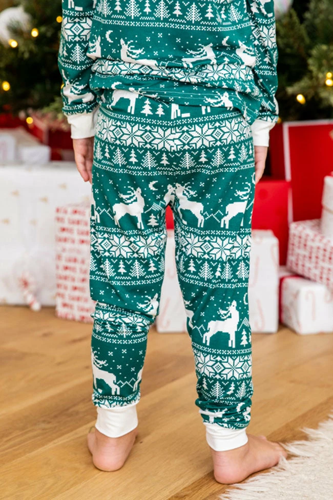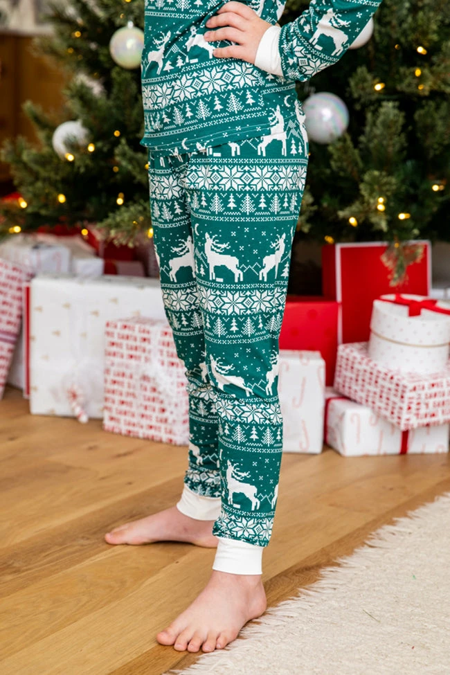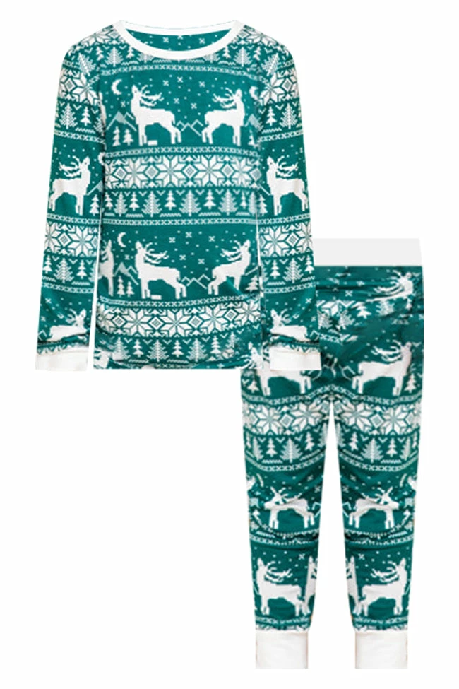 - Kids green and ivory Christmas print pajama set