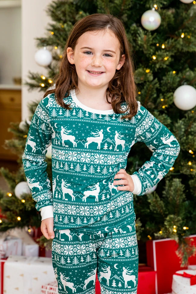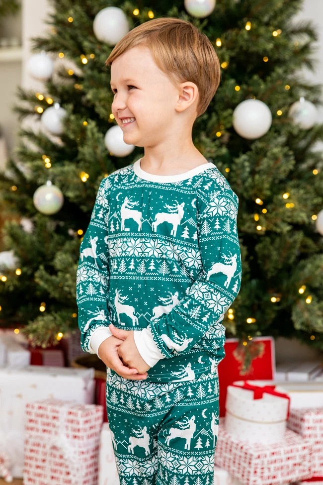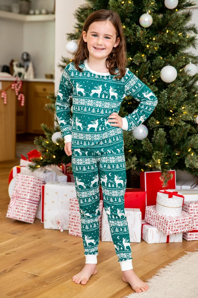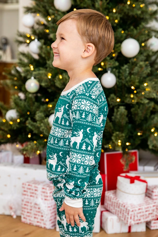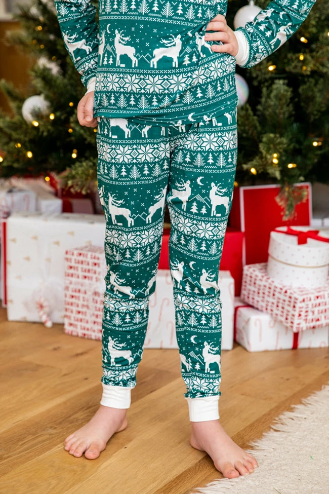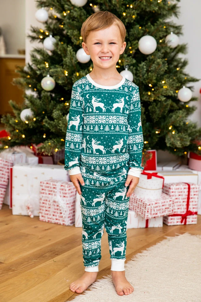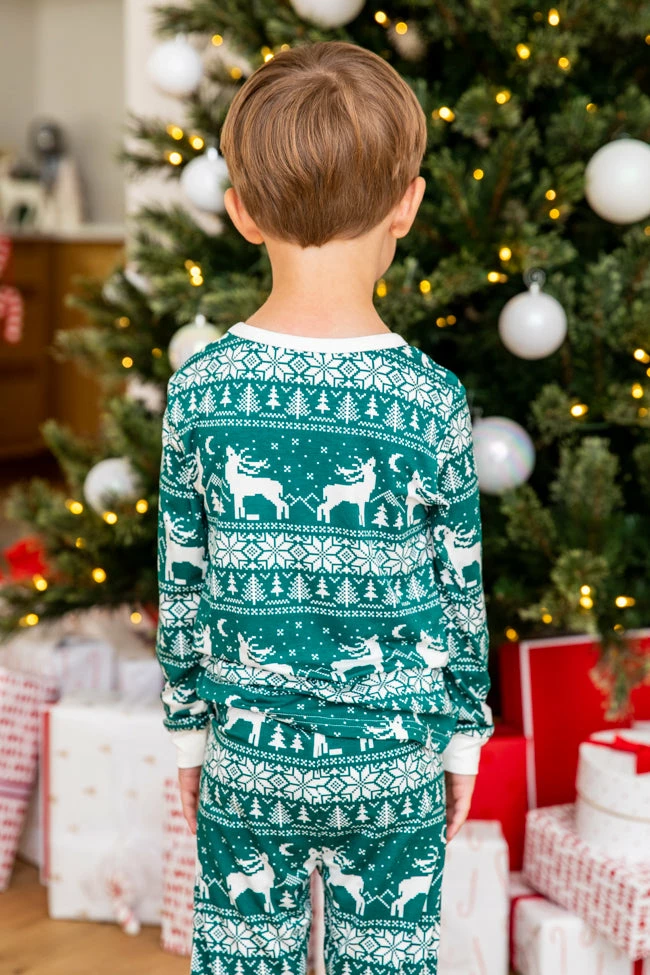 - Kids green and ivory Christmas print pajama set