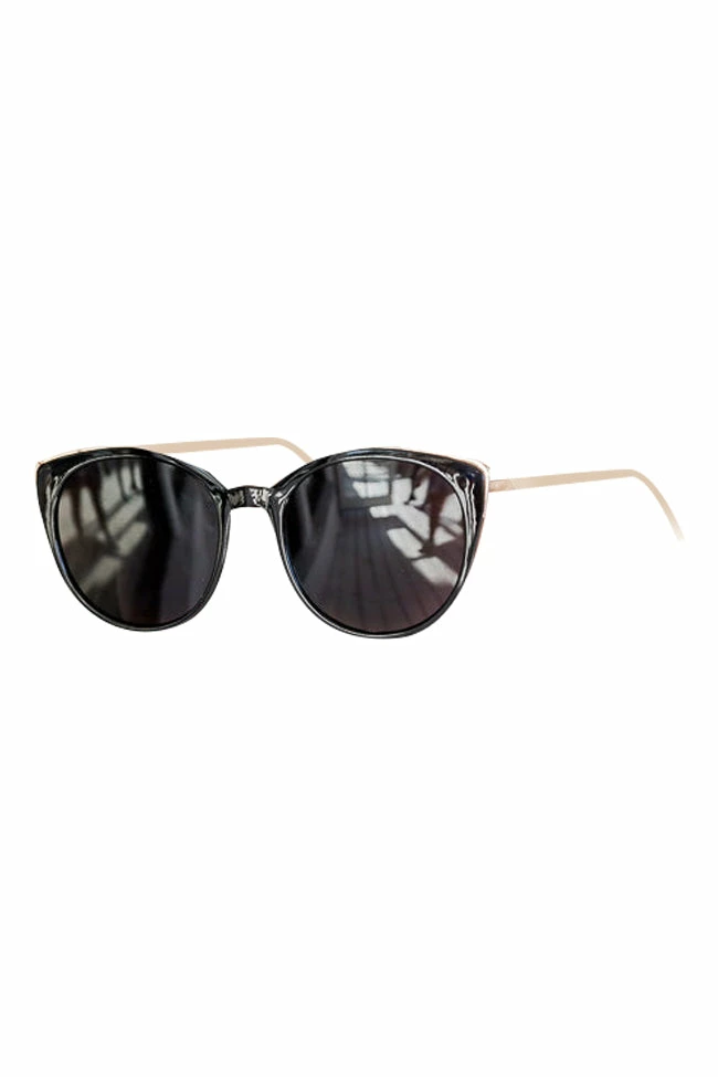 These beautiful sunglasses are perfect for protecting your eyes in style! We love the classic black frames with golden accents on the sides, plus classic black lenses for the perfect look! And the lenses look black when you lookΒ through them!Β This classic look is perfect for a day of shopping or a girls afternoon out!Β
