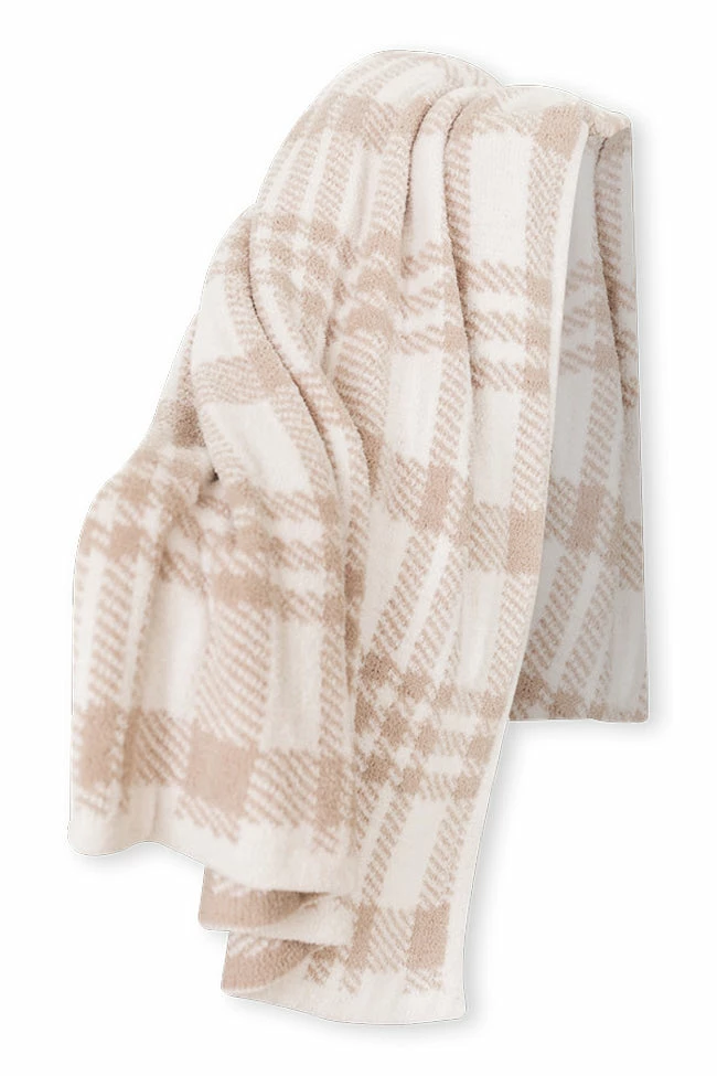 - Taupe plaid throw blanketΒ