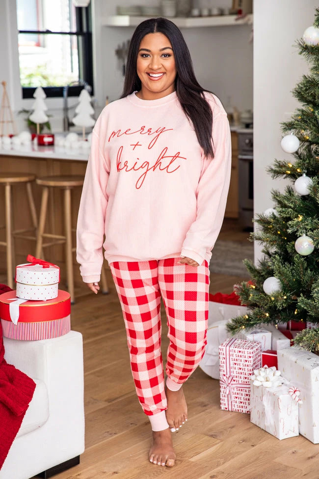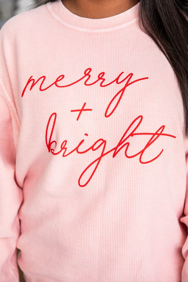 - Merry & Bright Script Pink Corded Graphic Sweatshirt