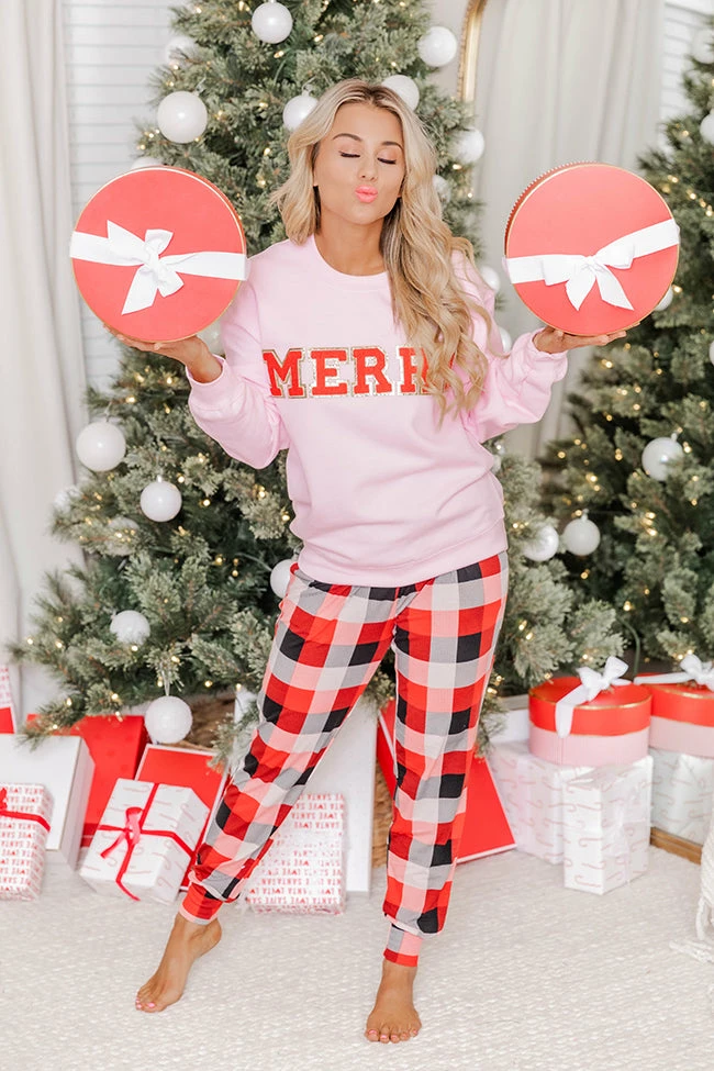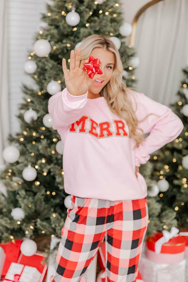 - Merry red chenille patch sweatshirt