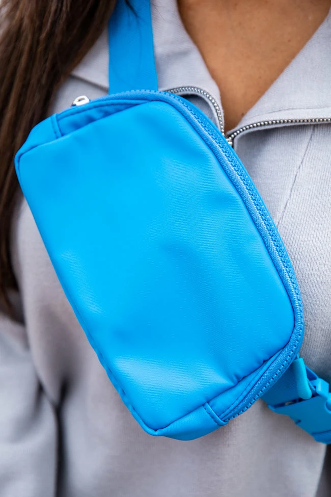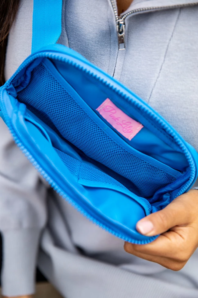 - Adjustable belt/ crossbody strap with squeeze buckle closure,Β and mesh pocketsΒ