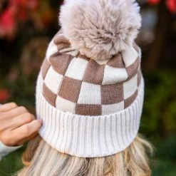 Budget βοΈ Pink Lily Rosy Cheeks Brown Checkered Beanie β